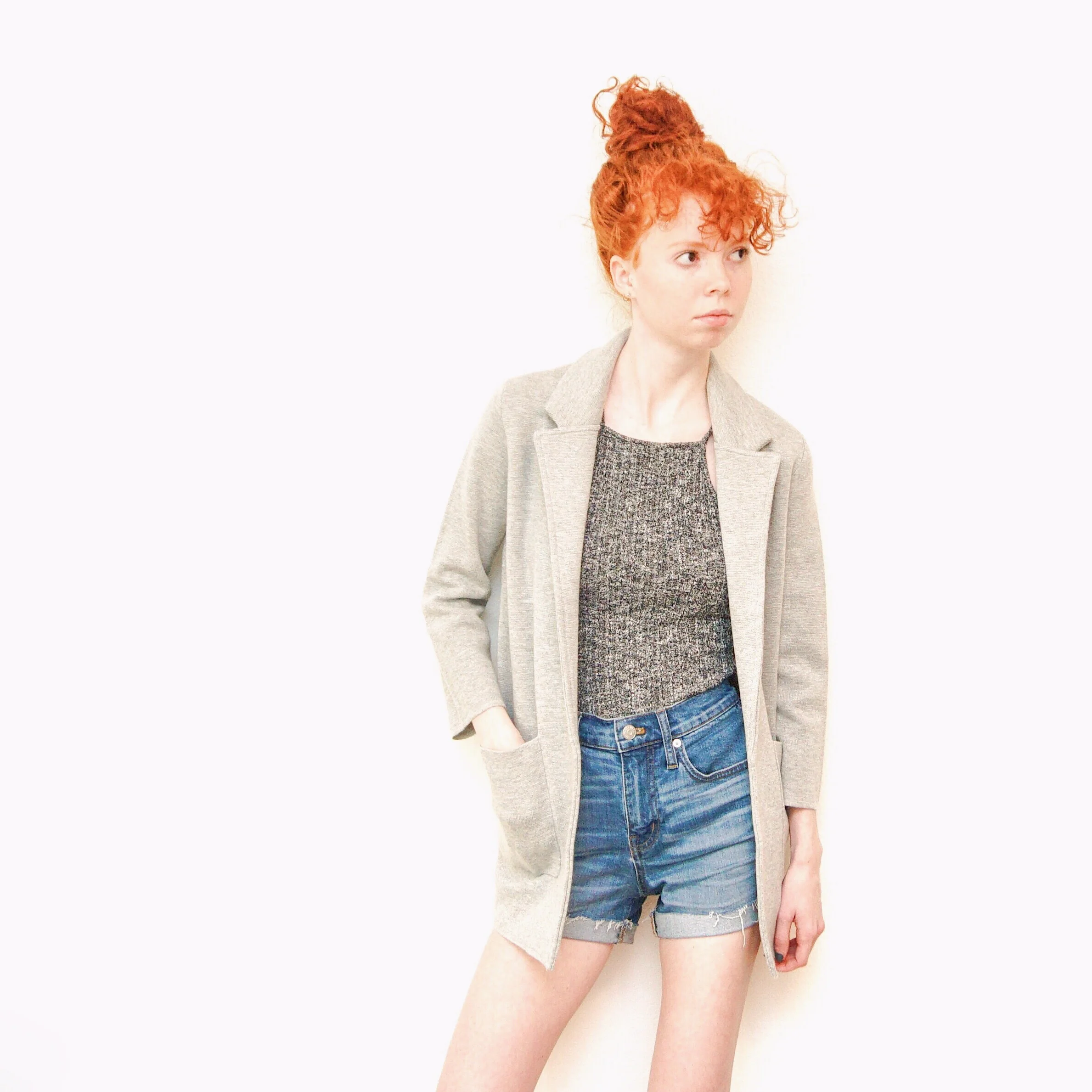 The gif inspiration for this “90s, but make it grown-up” look. I’m in my twenties, but some places and days are just no longer appropriate for me to run around in shorts and a tank top. In comes the savior of the cardigan world, the sweater blazer. I hate blazers. I hate them. I want to burn them all.